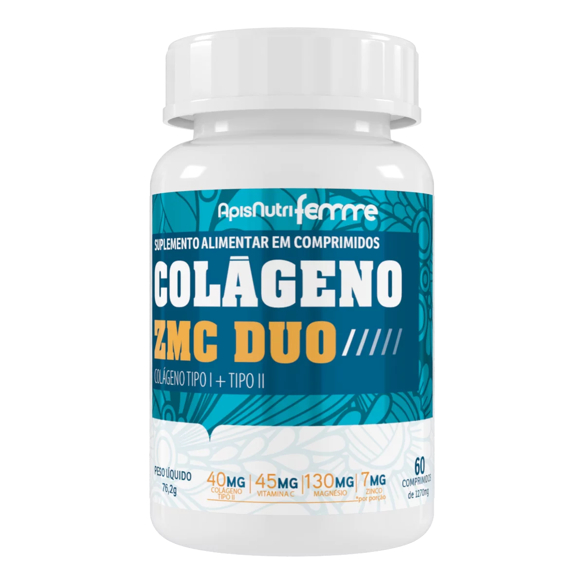 Possui em sua formulação o Colágeno Hidrolisado (Colágeno Tipo I), tradicionalmente utilizado para reparação e manutenção da saúde dos cabelos, da pele e das unhas; com o Colágeno Tipo II, cujas pesquisas mais recentes demonstram sua ação sobre as articula- ções. Também possui em sua formulação o Zinco, o Magnésio e a Vitamina C, importantes no metabolismo e preservação das fibras de colágeno.